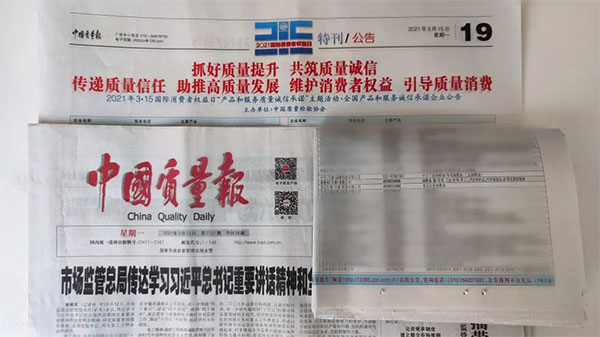 《中國質(zhì)量報》、《中國消費者報》、中國經(jīng)濟(jì)網(wǎng)、中國質(zhì)量網(wǎng)、中國消費網(wǎng)等多家權(quán)威媒體均予以集中展示和公告。不僅如此,公司還獲得了“全國質(zhì)量誠信先進(jìn)企業(yè)”的榮譽(yù)稱號,這是需要經(jīng)過中檢協(xié)長達(dá)三年的全方位監(jiān)督檢查合格才能獲得的榮譽(yù)稱號,其含金量可見一斑!