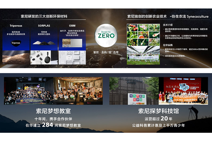在發(fā)展各項業(yè)務的同時,索尼矢志不渝履行對地球的“責任”,并通過技術和業(yè)務為地球做“貢獻”。在“走向零負荷”的環(huán)境目標指導下,在中國,索尼已從2020-2022財年連續(xù)實現(xiàn)100%可再生能源用電,并將多樣創(chuàng)新的環(huán)保技術成果引入中國:包括將多樣植物高密度混種以回歸自然生態(tài)的“協(xié)生農法”,索尼獨自開發(fā)的三大創(chuàng)新環(huán)保材料SORPLARSTM,TriporousTM,OBM等等。