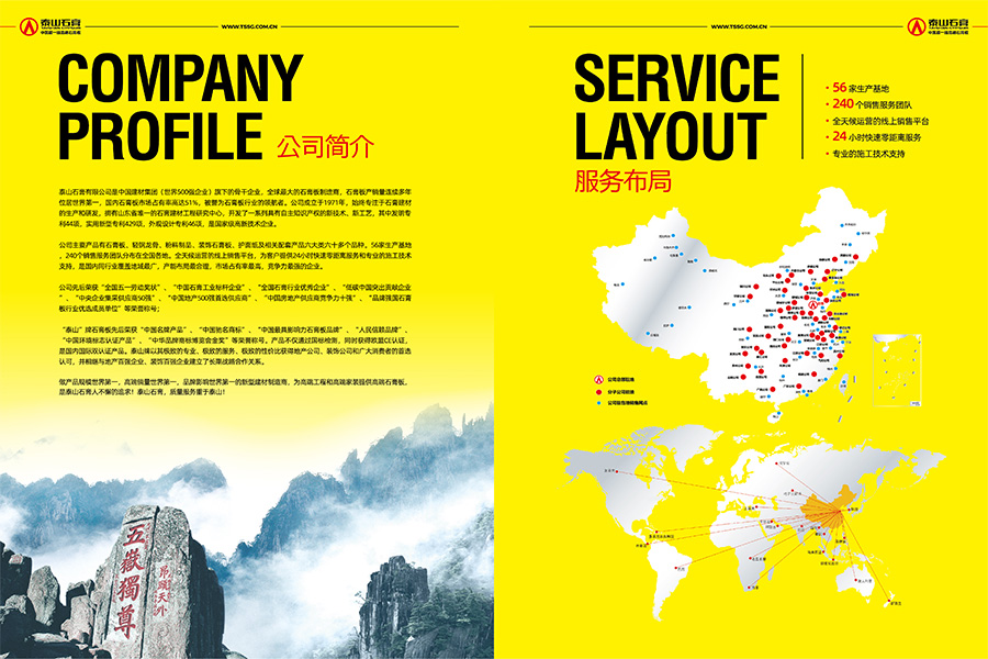 泰山石膏有限公司主要產(chǎn)品有石膏板、輕鋼龍骨、抹灰石膏、裝飾石膏板、護(hù)面紙及相關(guān)配套產(chǎn)品六大類六十多個(gè)品種。石膏板年生產(chǎn)能力25億㎡,輕鋼龍骨50萬(wàn)噸,裝飾石膏板2億㎡,護(hù)面紙65萬(wàn)噸。泰山石膏擁有資產(chǎn)133.23億元,56家生產(chǎn)基地分布于全國(guó)23個(gè)省市自治區(qū),240個(gè)銷售服務(wù)團(tuán)隊(duì)分布在全國(guó)各地,全天候運(yùn)營(yíng)的線上銷售平臺(tái),為客戶提供24小時(shí)快速零距離服務(wù)和專業(yè)的施工技術(shù)支持。是國(guó)內(nèi)同行業(yè)覆蓋地域最廣,產(chǎn)能布局最合理,市場(chǎng)占有率最高,競(jìng)爭(zhēng)力最強(qiáng)的企業(yè)。