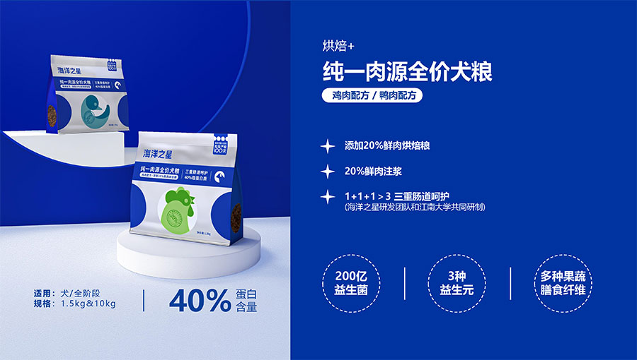 隨著營(yíng)養(yǎng)消費(fèi)逐步升級(jí),海洋之星品牌產(chǎn)品線延展至多肉源、多品類,并正式布局烘焙糧市場(chǎng),以“100%真鮮肉*”重新定義高端烘焙糧品類,為寵主和愛寵提供高品質(zhì)的寵物主糧產(chǎn)品。