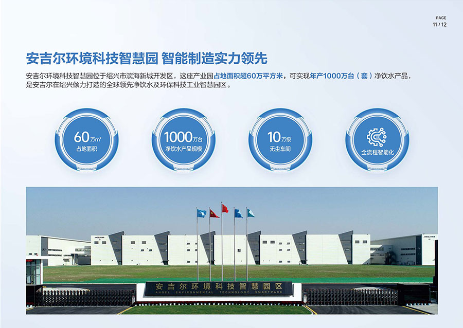 安吉爾擁有三大生產(chǎn)基地,其中安吉爾環(huán)境科技智慧園占地超60萬平方米,可實現(xiàn)年產(chǎn)1000萬臺(套)的凈飲水產(chǎn)品規(guī)模。安吉爾擁有完整的生產(chǎn)管理體系,已獲中國CQC、美國UL、美國NSF、加拿大CSA、法國BV、英國ITS、瑞士SGS和德國TüV全球八項權威機構認證。