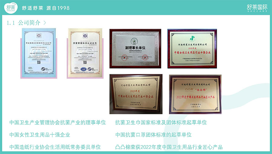 2022年,該公司“舒萊”、“凸凸棉”品牌被中國(guó)造紙學(xué)會(huì)評(píng)定為“2022年度中國(guó)衛(wèi)生用品行業(yè)匠心產(chǎn)品”;
