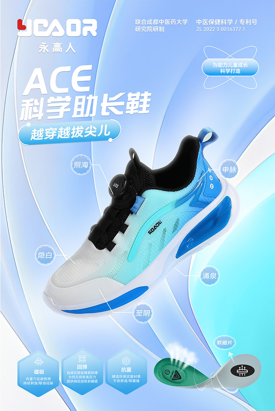 2021年,永高人順應(yīng)國內(nèi)消費(fèi)升級,與國際超級IP海綿寶寶跨界合作,繼續(xù)引領(lǐng)兒童鞋服時尚前沿趨勢。此外,還攜手成都中醫(yī)藥大學(xué)專家團(tuán)隊(duì)聯(lián)合研制“永高人科技助長保健鞋”系列產(chǎn)品,通過“磁刺激”對足部穴位按摩,聯(lián)絡(luò)身體經(jīng)脈,從而調(diào)節(jié)臟腑器官的機(jī)能活動,助力兒童身高成長發(fā)育。