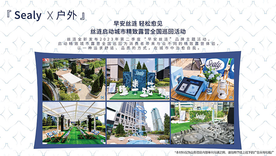 絲漣全新發(fā)布2023年第二季度“早安絲漣”品牌主題活動,啟動精致城市露營全國巡回為消費者帶來與眾不同的精致露營體驗,以一種追求舒適、品質(zhì)的方式,在城市中治愈自我。
