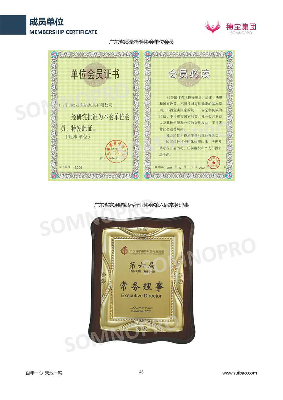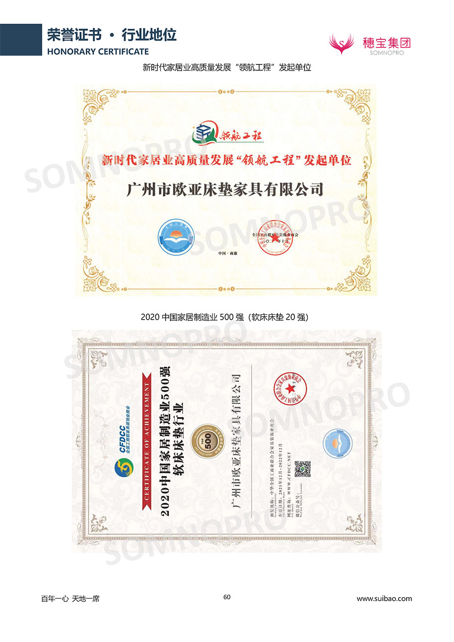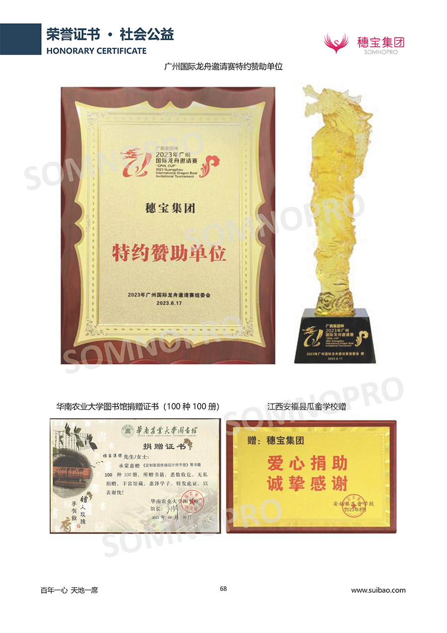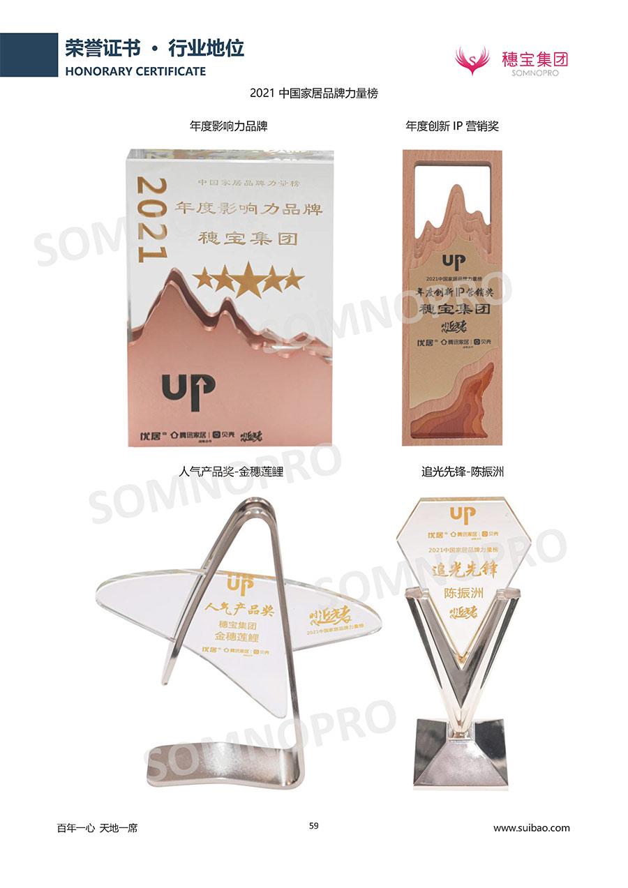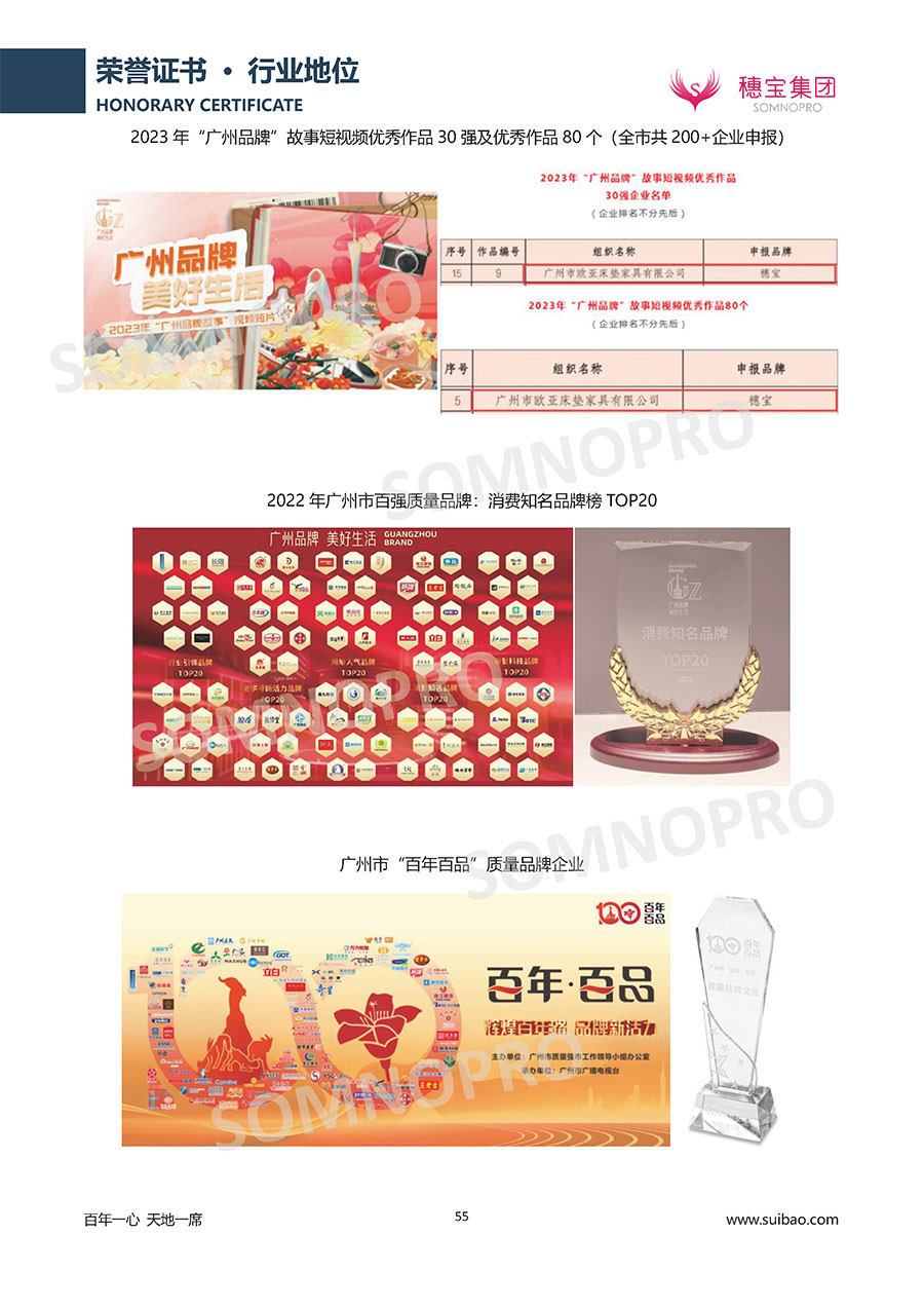 自1971年獨立研發(fā)生產(chǎn)出專屬國人的彈簧床墊,穗寶關(guān)于優(yōu)質(zhì)深度睡眠的研究已有半個世紀的歷史。穗寶一直專注床墊,專注中國消費者的睡眠研究,針對中國人特點進行優(yōu)化創(chuàng)新,不斷提升國人的睡眠體驗,只為成就每個晚上8小時的優(yōu)質(zhì)深度睡眠。憑借不斷革新的研發(fā)科技和深受消費者信賴的產(chǎn)品品質(zhì),穗寶集團旗下品牌和產(chǎn)品屢獲國內(nèi)外大獎,連續(xù)20年榮膺中國500最具價值品牌,品牌價值高達302.89億元。