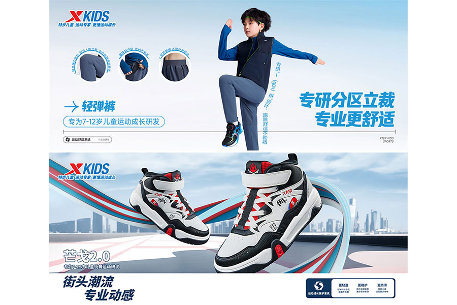 特步兒童專注于3-14歲兒童群體,旨在為這一群體,提供高性價比且品類豐富的兒童運動用品,為廣大消費者帶來輕松的舒適體驗和物超所值的購買經(jīng)歷。自2020年特步兒童全新變革,致力于釋放孩子天性,讓每一個孩子健康、快樂地運動成長,擁有變得“非同一般”的可能性。
