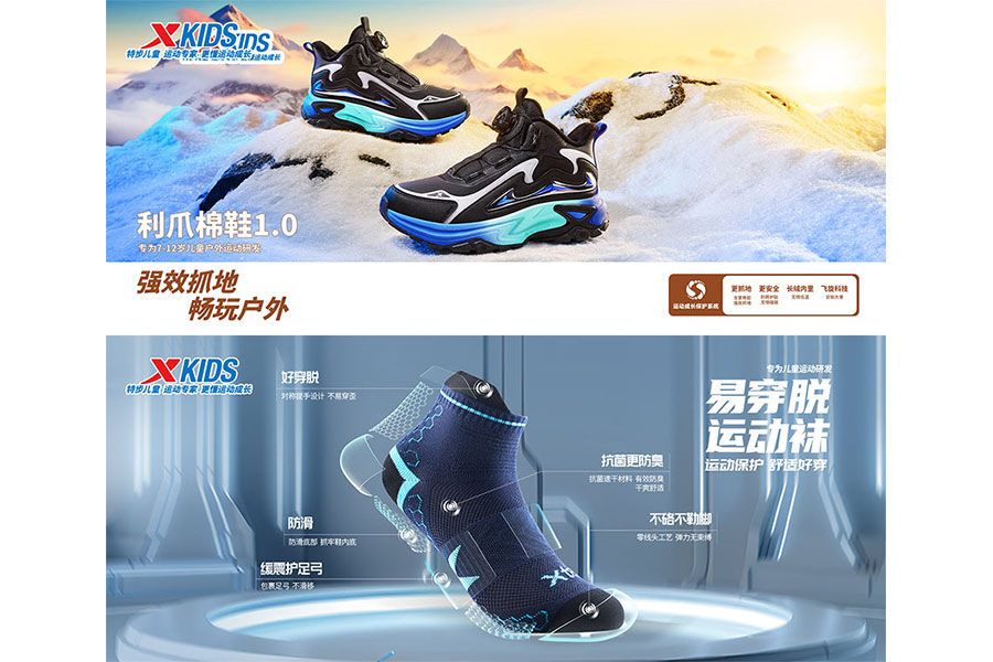 主要產(chǎn)品:特步兒童童鞋、童裝、兒童配件