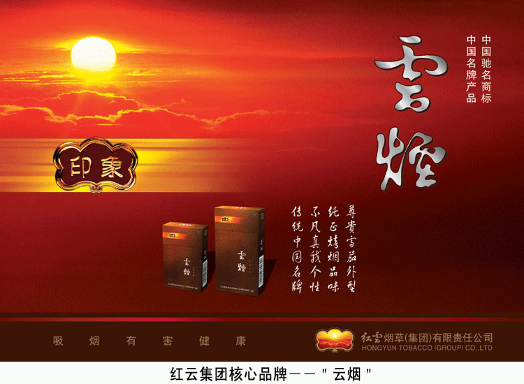 集團主要產(chǎn)品有“云煙”、“小熊貓”、“紅山茶”、“石林”、“香格里拉”、“福”等十多個品牌,其中10個品牌入選“中國卷煙百牌號”名錄。核心品牌“云煙”榮獲“中國馳名商標”和“中國名牌產(chǎn)品”稱號,連續(xù)8年(1998-2005)榮列“全國市場同類產(chǎn)品十大暢銷品牌及最具競爭力品牌”。目前,集團正致力于將“云煙”品牌培育成為單品牌年創(chuàng)稅利超百億元的強勢品牌,將“紅山茶”品牌培育成為年產(chǎn)銷規(guī)模過百萬箱的優(yōu)勢大品牌。