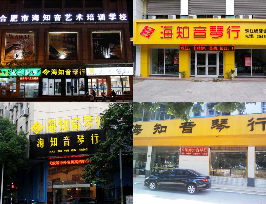 海知音琴行的門店包括合肥長江路店、宣城路店、合作化路店、蚌埠店、阜陽店、蕪湖店、巢湖店、淮南店、安慶店和南京洪武路店,營業(yè)面積達到6600平米,成為安徽地區(qū)鋼琴年銷量超7000臺位居全國鋼琴銷售量前列,成為中國內(nèi)地最頂級的琴行銷售企業(yè)之一。