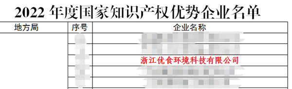 近日,國(guó)家知識(shí)產(chǎn)權(quán)局發(fā)布了《關(guān)于確定2022年新一批及通過(guò)復(fù)核的國(guó)家知識(shí)產(chǎn)權(quán)示范企業(yè)和優(yōu)勢(shì)企業(yè)的通知》通知,浙江優(yōu)食環(huán)境科技有限公司榮獲“2022年度國(guó)家知識(shí)產(chǎn)權(quán)優(yōu)勢(shì)企業(yè)”的稱號(hào)。