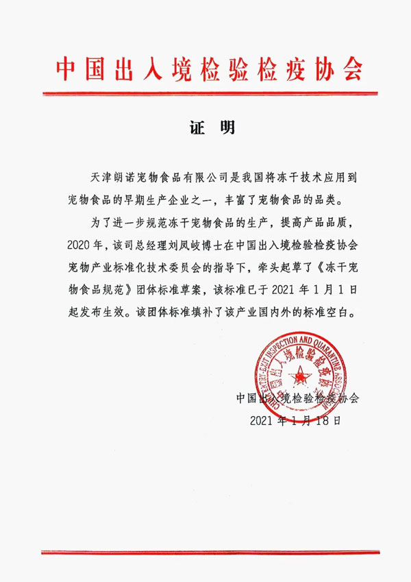 朗諾作為國(guó)內(nèi)率先將國(guó)際前沿凍干技術(shù)應(yīng)用于寵物食品研發(fā)及生產(chǎn)的企業(yè),始終以推動(dòng)凍干寵物食品行業(yè)規(guī)范、引領(lǐng)產(chǎn)業(yè)升級(jí)為己任。早在2021年1月在寵工委的指導(dǎo)下,由朗諾領(lǐng)銜起草制定《凍干寵物食品規(guī)范》正式頒布實(shí)施,為中國(guó)凍干寵物食品樹(shù)立細(xì)分行業(yè)標(biāo)準(zhǔn)。