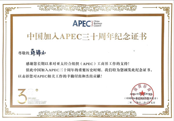 至今已得到逾60國(guó)政要貴賓青睞與認(rèn)可,擔(dān)當(dāng)著傳遞中國(guó)特色大國(guó)外交理念的茶文化使者,薛錦山于2021年獲得中國(guó)加入APEC三十周年紀(jì)念證書,于2022年被授予新時(shí)代中國(guó)經(jīng)濟(jì)創(chuàng)新人物榮譽(yù)稱號(hào)。