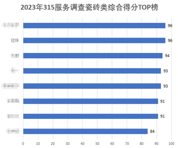 ▲在2023年網(wǎng)易家居315服務(wù)調(diào)查T(mén)OP榜,冠珠以96分的成績(jī)高居榜首