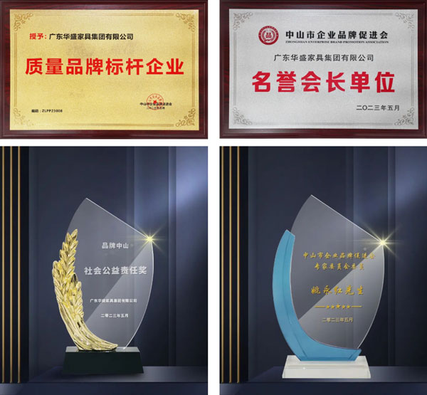 華盛家具集團榮獲 “質(zhì)量品牌標桿企業(yè)”、“品牌中山社會公益責任獎”等榮譽稱號