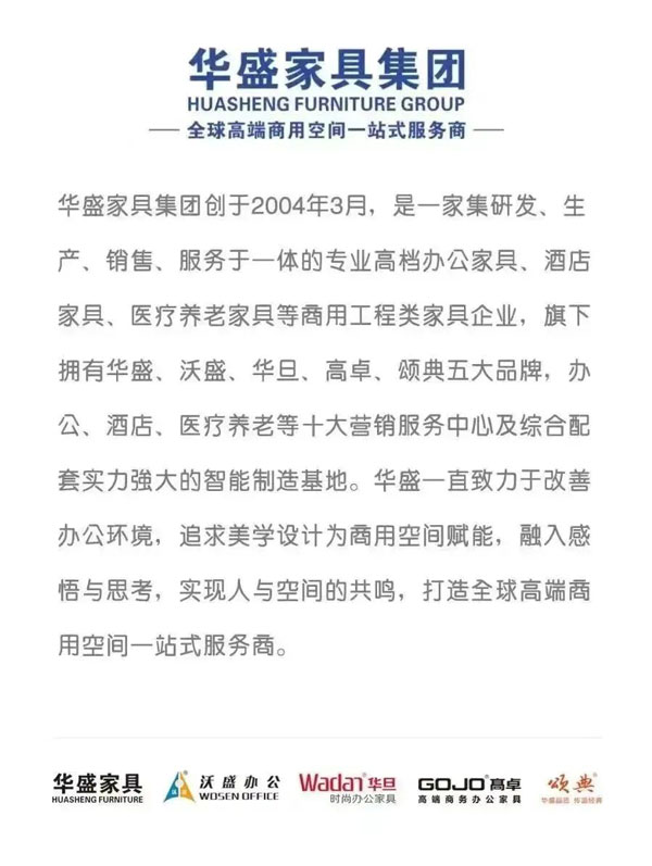 作為在“中國辦公家具重鎮(zhèn)”成長起來的龍頭企業(yè)以及中山市辦公家具行業(yè)協(xié)會會長單位,華盛希望向整個辦公家具產(chǎn)業(yè)和消費市場傳遞華盛穩(wěn)實、積極進取、值得信任和信賴的平臺型、服務型的企業(yè)形象,從而團結(jié)全市辦公家具行業(yè)力量,借力全國乃至全球資源,助力中山市“中國辦公家具重鎮(zhèn)”建設,助推中國辦公家具產(chǎn)業(yè)高質(zhì)量發(fā)展,擴大區(qū)域知名度和行業(yè)影響力,讓辦公家具企業(yè)得以更好更快的發(fā)展,同時積極籌劃中山打造“中國商用家具之都”!