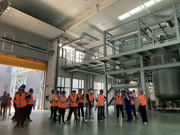 在李艷國(guó)董事長(zhǎng)、生產(chǎn)部經(jīng)理王建成等領(lǐng)導(dǎo)的陪同下,商學(xué)院觀摩團(tuán)先后參觀了新廠的基礎(chǔ)油儲(chǔ)罐區(qū)、實(shí)驗(yàn)中心、潤(rùn)滑油調(diào)和設(shè)備及灌裝生產(chǎn)線、潤(rùn)滑脂調(diào)和設(shè)備、金屬加工油液/防凍液/尿素溶液的生產(chǎn)工藝及設(shè)備。
