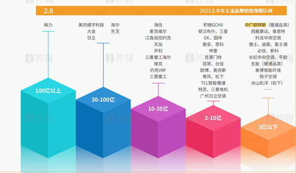 作為“熱泵行業(yè)領軍品牌”的中廣歐特斯,從2018年起逐步轉型向暖通與舒適家居領域滲透。經過多年積累,中廣歐特斯在2023年上半年依然保持著逆勢而上的發(fā)展優(yōu)勢,在主流品牌3億以下銷售規(guī)模中占據(jù)頭部位置。