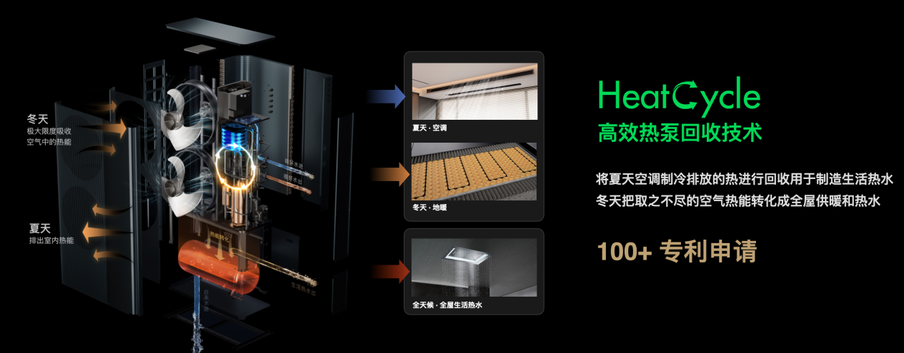 歐瑞博自研的 HeatCycle™ 高效熱泵回收存儲技術(shù),創(chuàng)造性地將空調(diào)制冷排出去的熱回收并用于制造生活熱水,大幅提高能量利用率,綜合能效比高達5.6,遠超國標(biāo)一級能耗標(biāo)準(zhǔn)。同時,MixStation 搭載了歐瑞博智能中控屏 MixPadAir 和智能系統(tǒng) HomeAI 5.0,除了更好的屏幕UI和大模型智能語音交互,在大模型AI與新能源技術(shù)加持下,主動智能,節(jié)能增效等方面均有重大行業(yè)性突破。