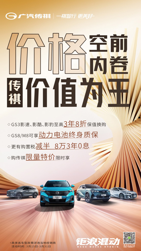 或許是層出不窮的福利發(fā)布、良莠不齊的新能源市場(chǎng),使得不少人還處在持幣觀望的狀態(tài),但對(duì)于傳祺GS8這么一臺(tái)擁有超20年混動(dòng)技術(shù)背書(shū)、經(jīng)歷過(guò)品質(zhì)檢驗(yàn)、市場(chǎng)檢驗(yàn)的大型SUV,我們并不需要再去心存疑慮,畢竟它已經(jīng)用優(yōu)秀的產(chǎn)品實(shí)力、良好的市場(chǎng)口碑、超高的保值率回應(yīng)了你的問(wèn)題??偠灾I(mǎi)車(chē)不管是看買(mǎi)車(chē)時(shí)的福利補(bǔ)貼,還是看買(mǎi)車(chē)后的價(jià)值體驗(yàn),傳祺GS8都無(wú)愧是你的家用大型SUV首選。