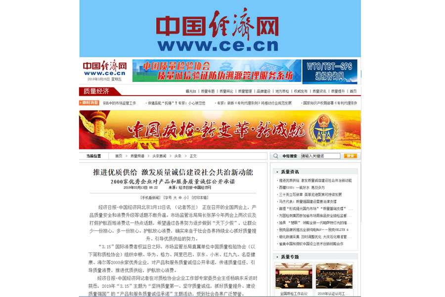 (備注:本新聞刊發(fā)于《中國(guó)質(zhì)量報(bào)》2019年3月15日刊第03版)