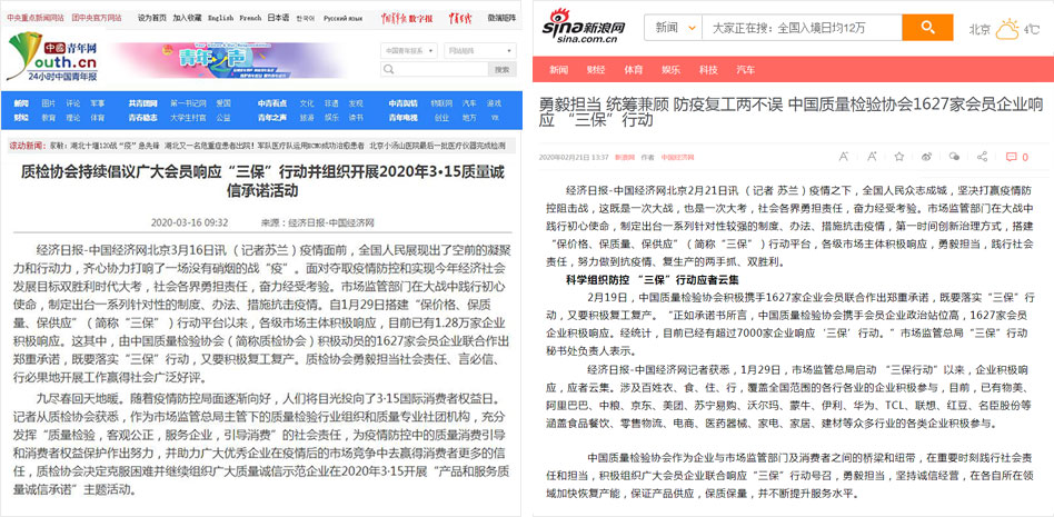 中國青年網(wǎng)《質(zhì)檢協(xié)會持續(xù)倡議廣大會員響應(yīng)“三保”行動并組織開展2020年3·15質(zhì)量誠信承諾活動》