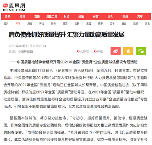 中國(guó)質(zhì)量報(bào):肩負(fù)使命抓好質(zhì)量提升匯聚力量助高質(zhì)量發(fā)展——中國(guó)質(zhì)量檢驗(yàn)協(xié)會(huì)組織開(kāi)展2021年全國(guó)“質(zhì)量月”企業(yè)質(zhì)量誠(chéng)信倡議專(zhuān)題活動(dòng)