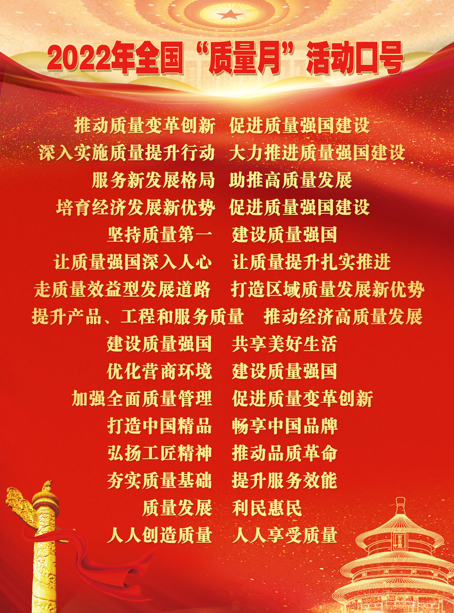 為深入貫徹習(xí)近平新時(shí)代中國(guó)特色社會(huì)主義思想,全面落實(shí)黨的十九大和十九屆歷次全會(huì)精神,立足新發(fā)展階段,完整、準(zhǔn)確、全面貫徹新發(fā)展理念,構(gòu)建新發(fā)展格局,樹(shù)立質(zhì)量第一的強(qiáng)烈意識(shí),大力提升各行業(yè)質(zhì)量水平,推動(dòng)經(jīng)濟(jì)加快發(fā)展,促進(jìn)質(zhì)量強(qiáng)國(guó)建設(shè),以實(shí)際行動(dòng)迎接黨的二十大勝利召開(kāi),市場(chǎng)監(jiān)管總局等21個(gè)部門(mén)定于2022年9月聯(lián)合開(kāi)展以“推動(dòng)質(zhì)量變革創(chuàng)新 促進(jìn)質(zhì)量強(qiáng)國(guó)建設(shè)”為主題的2022年全國(guó)“質(zhì)量月”活動(dòng)。